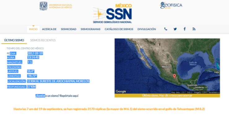 Aunque de forma preliminar el Servicio Sismológico Nacional ubicó el epicentro en Puebla, poco después señaló que fue en Morelos.