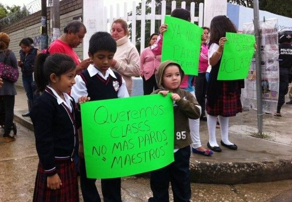 La organización Mexicanos Primero, en su Índice de Cumplimiento de la Calidad Educativa (ICRE), sitúa a Oaxaca en el último lugar nacional, debido a la poca información que se tiene sobre el aprendizaje de los alumnos y a que los maestros se niegan a ser evaluados. (FUENTE: El Finaciero)