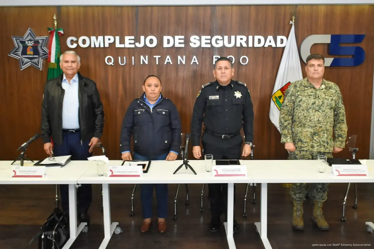 En la conferencia de prensa estuvieron también la Secretaria de Gobierno, Cristina Torres Gómez; Contralmirante Julio César Gómez Torres, Secretario de Seguridad Ciudadana y General de Brigada Diplomado de Estado Mayor Claudio Edmundo Huizar de la Torre, comandante de la Guarnición Militar de Cancún.
