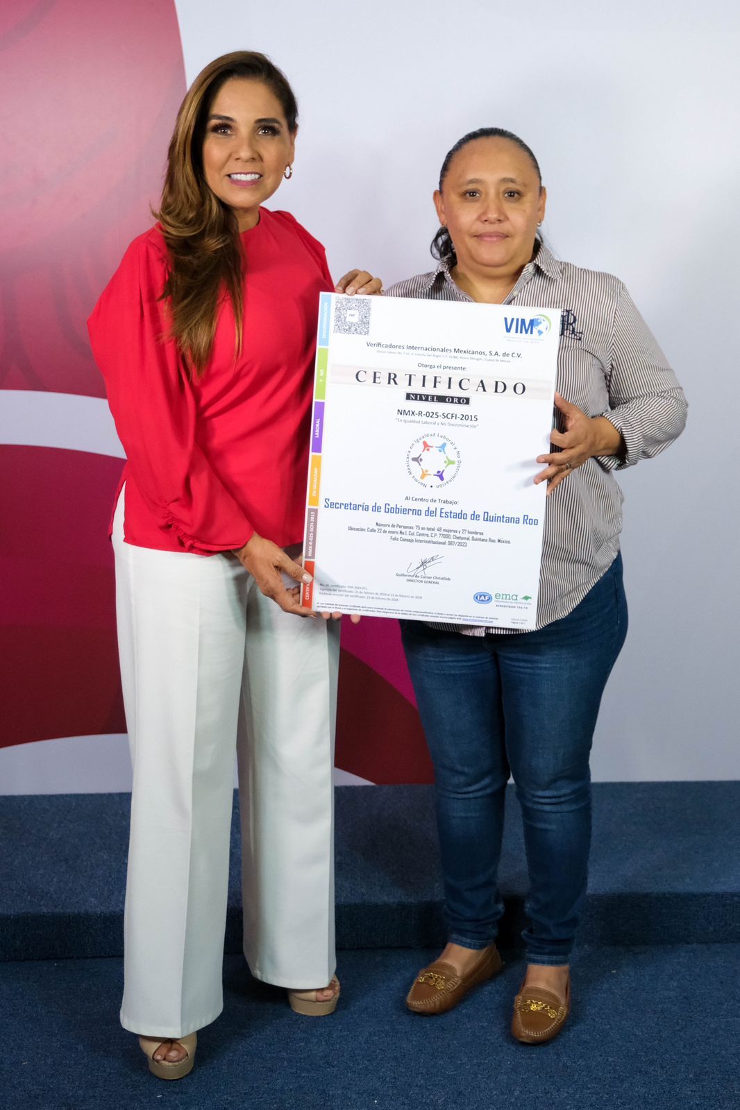 CHETUMAL, Quintana Roo, 28 de Febrero del 2024.– Las acciones emprendidas por la gobernadora Mara Lezama en materia de igualdad y no discriminación laboral permitieron a Quintana Roo, a través de la Secretaría de Gobierno, obtener la Certificación Oro de cumplimiento de la Norma Mexicana NMX-R-O25-SECFI-2015.