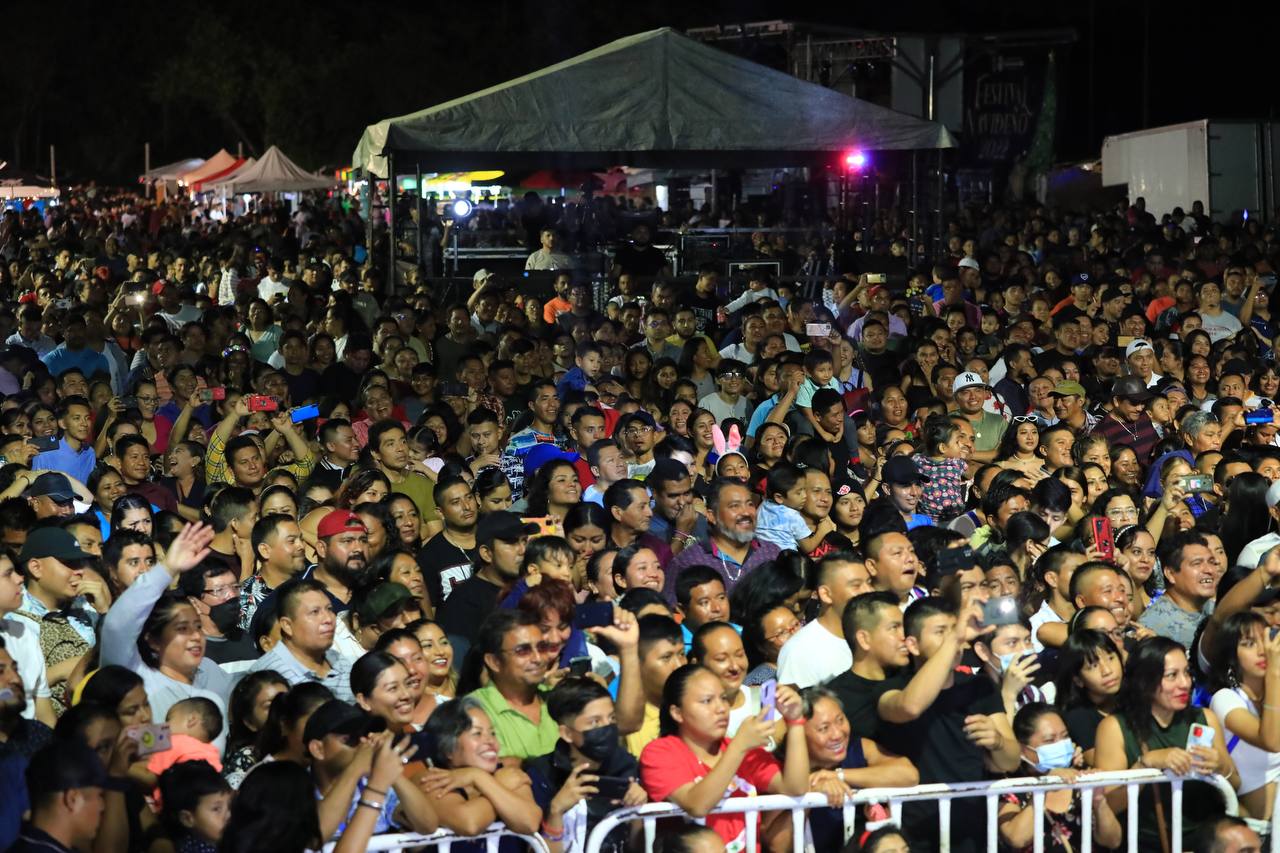 Playa del Carmen, Solidaridad, 19 de diciembre del 2022. – Más de ocho mil personas estuvieron presentes en el exitoso festival navideño amenizado la noche de ayer por el grupo musical Junior Klan, que el gobierno de Lili Campos organizó de manera gratuita en el recinto ferial, donde se encuentra instalada una pista de hielo, un circo y una villa navideña.
