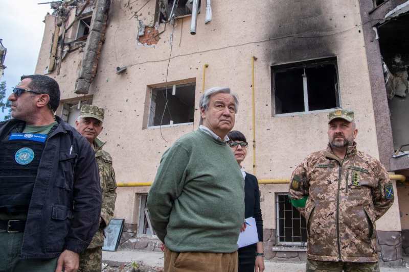 Wherever there is war, the highest price is paid by civilians, @antonioguterres said today after visiting towns around Kyiv impacted by the war. pic.twitter.com/aL2LHrDqT6