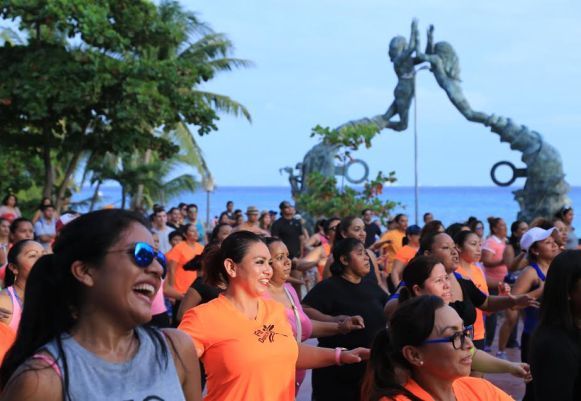 PLAYA DEL CARMEN, Quintana Roo, 28 de Enero.- En representación de la Presidenta Municipal de Solidaridad, Cristina Torres Gómez, la Presidenta Honoraria del Sistema DIF, Claudia Torres Gómez, encabezó la “Mega Clase de Zumba” en conmemoración de Día Naranja de la campaña internacional “ÚNETE para poner fin a la violencia contra las mujeres”.