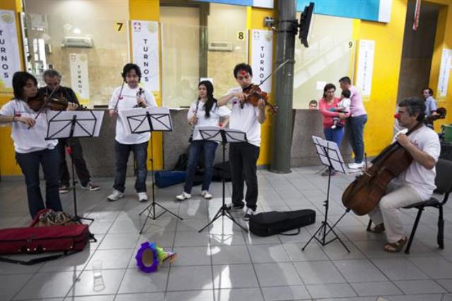 BUENOS AIRES, Argentina, 26 de Mayo de 2016.- En medio de un sinfín de colas para pedir turnos, madres que entran con sus niños en brazos y mareas de gente subiendo y bajando escaleras para retirar estudios médicos, de pronto y a media mañana de un día normal del Hospital Dr. Cosme Argerich de Buenos Aires comienzan a resonar violines afinando, cuerdas graves de contrabajo y alguna voz vocalizando.