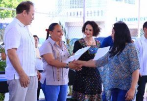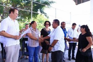 Lo anterior en el arranque del “Programa de Regularización de los Asentamientos Humanos en el Estado de Quintana Roo” a cargo de la Secretaría de Desarrollo Urbano y Vivienda (SEDUVI) y en coordinación con la Desarrolladora de la Riviera Maya. En el evento realizado en el Domo del Parque “Lázaro Cárdenas del Río”, nueve vecinos de la colonia Colosio recibieron el título de propiedad que da certeza a su patrimonio.