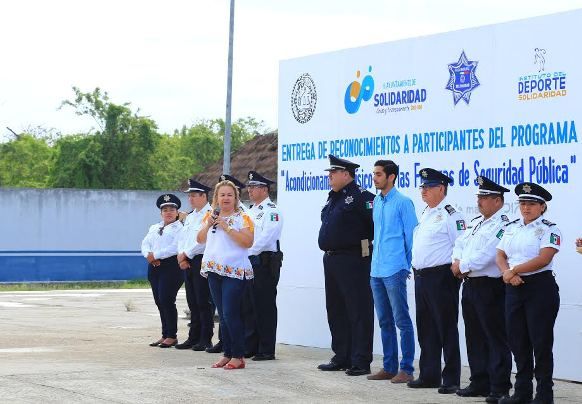 PLAYA DEL CARMEN, Quintana Roo, 5 de Mayo.- El Gobierno de Solidaridad encabezado por la Presidenta Municipal, Cristina Torres Gómez, llevó a cabo la entrega de reconocimientos a 30 participantes del programa “Acondicionamiento Físico de las Fuerzas de Seguridad Pública”, acción que se realiza en cumplimiento del Eje Rector “Seguridad Solidaria” del Plan Municipal de Desarrollo (PMD) 2016-2018.
