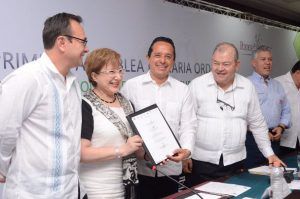 CANCÚN, Quintana Roo, 25 de Marzo.- “Hay que luchar para que la gente tenga vivienda y nos corresponde dar esa seguridad; cuando una familia tiene certeza jurídica y seguridad patrimonial está tranquila porque sabe que el patrimonio de sus hijos está asegurado”, manifestó el Gobernador Carlos Joaquín al encabezar la Reunión de la Familia Infonavit y firmar el Pacto de Adhesión para Juzgar con Perspectiva de Género.