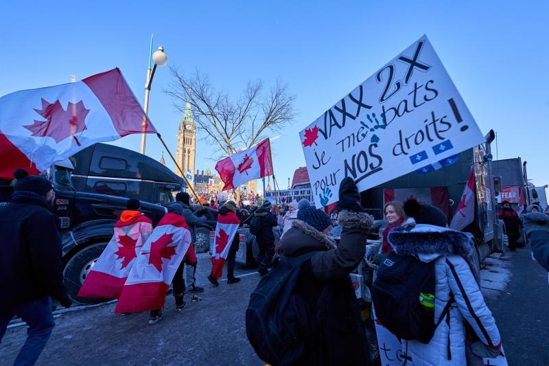El pasado 29 de enero, un convoy de varios centenares de camiones de alto tonelaje y miles de personas se concentraron frente al Parlamento canadiense en Ottawa convocados por el movimiento antivacunas y grupos extremistas de derecha.