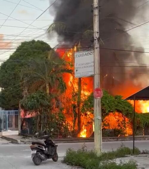 Al llegar, las llamas ya habían consumido por completo una palapa, así como diversos artículos domésticos —entre ellos lavadoras, refrigeradores y parrillas—, ya que en el inmueble se realizaban reparaciones de electrodomésticos.