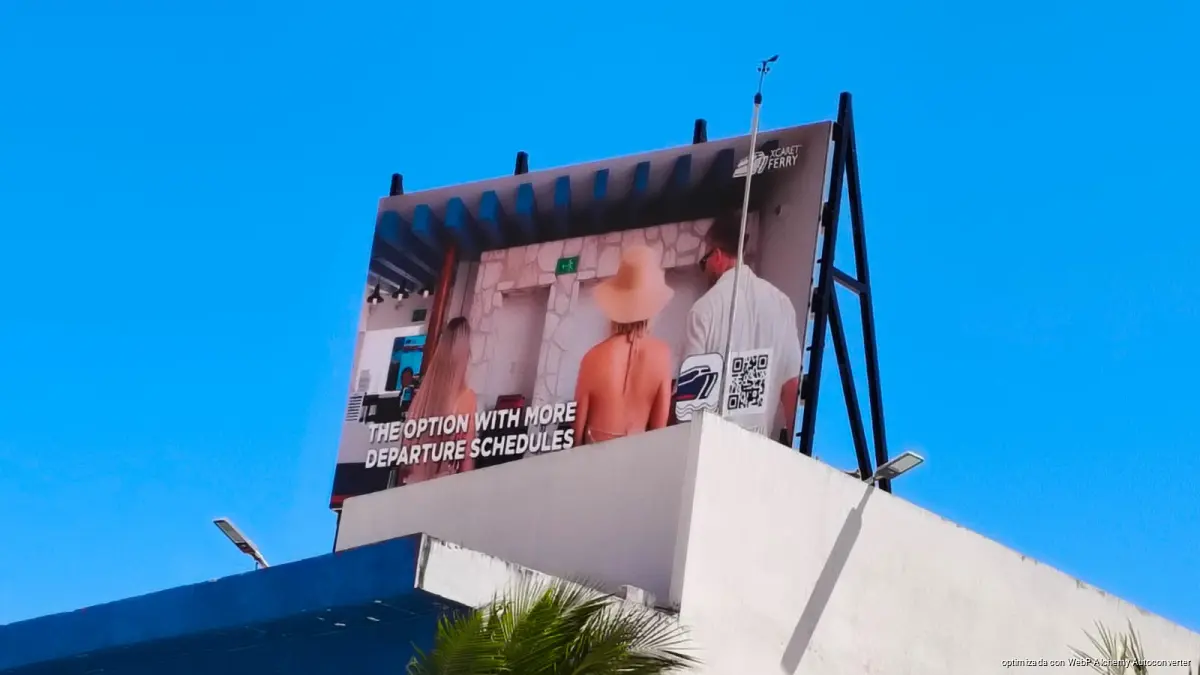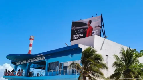 PLAYA DEL CARMEN, Quintana Roo, 09 de abril de 2026.– La colocación de una pantalla en la parte alta del Muelle Fiscal de la avenida Juárez, en convenio entre la empresa Xcaret y la concesionaria NAVEGA, encendió alertas por el posible riesgo que podría representar ante fuertes rachas de viento.