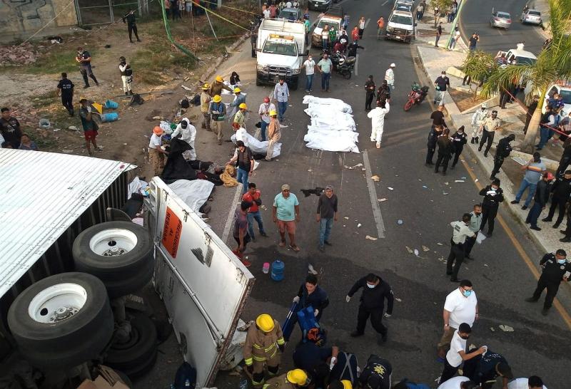 El accidente sucedió cuando un tráiler que transportaba a más de un centenar de migrantes centroamericanos, en condiciones de hacinamiento, volcó en un curva, debido al exceso de velocidad, en la carretera Chiapa de Corzo-Tuxtla Gutiérrez.