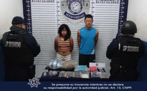 La madrugada de hoy 4 de septiembre los oficiales transitaban sobre la avenida Siaan Kaan con Avenida de las Naciones cuando sorprendieron a Gerardo “N” de 25 años de edad, originario de Cancún y María “N” de 20 años de edad, originaria de México, intercambiando lo que parecía ser posible droga, por lo que los policías les marcaron el alto.