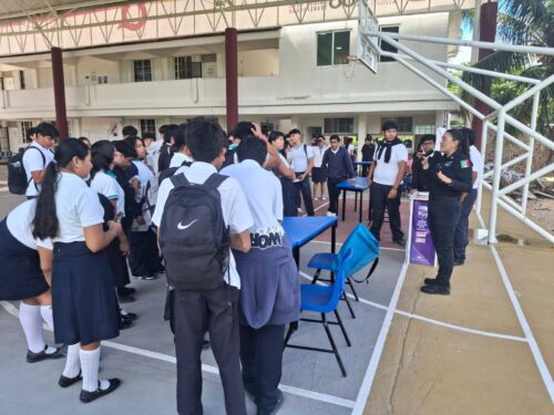 Puerto Morelos, Quintana Roo a 1 de noviembre 2025.– Como parte de las acciones para erradicar la violencia en sus diversas modalidades y seguir construyendo un Puerto Morelos de Paz, como ha instruido la presidenta Blanca Merari Tziu Muñoz, el Grupo Especializado para la Atención a la Violencia Familiar y de Género (Geavig), perteneciente a la Secretaría Municipal de Seguridad Ciudadana participó en la “Feria de la Salud” organizada por el Colegio de Bachilleres, dio a conocer el secretario Alejandro Nava García.