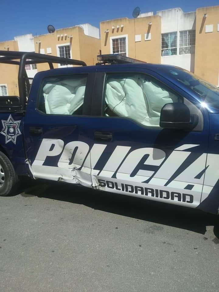 PLAYA DEL CARMEN, Quintana Roo, 26 de mayo.- Una patrulla atravesó una intersección sin tener preferencia de paso ni tener sus luces encendidas, por lo que fueron colisionados por un motociclista, que resultó lesionado, esta tarde en el fraccionamiento Villas del Sol.