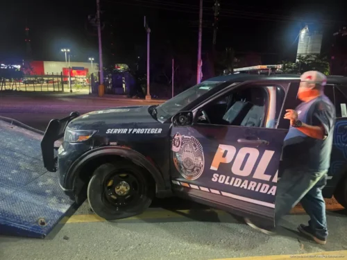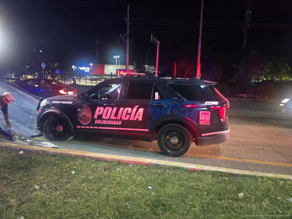 PLAYA DEL CARMEN, Quintana Roo, 29 de abril de 2026.- Una patrulla de la Secretaría de Seguridad Ciudadana terminó fuera de la vialidad la noche de este lunes, luego de que su conductor perdiera el control sobre el bulevar Playa del Carmen y se impactara contra el camellón central.
