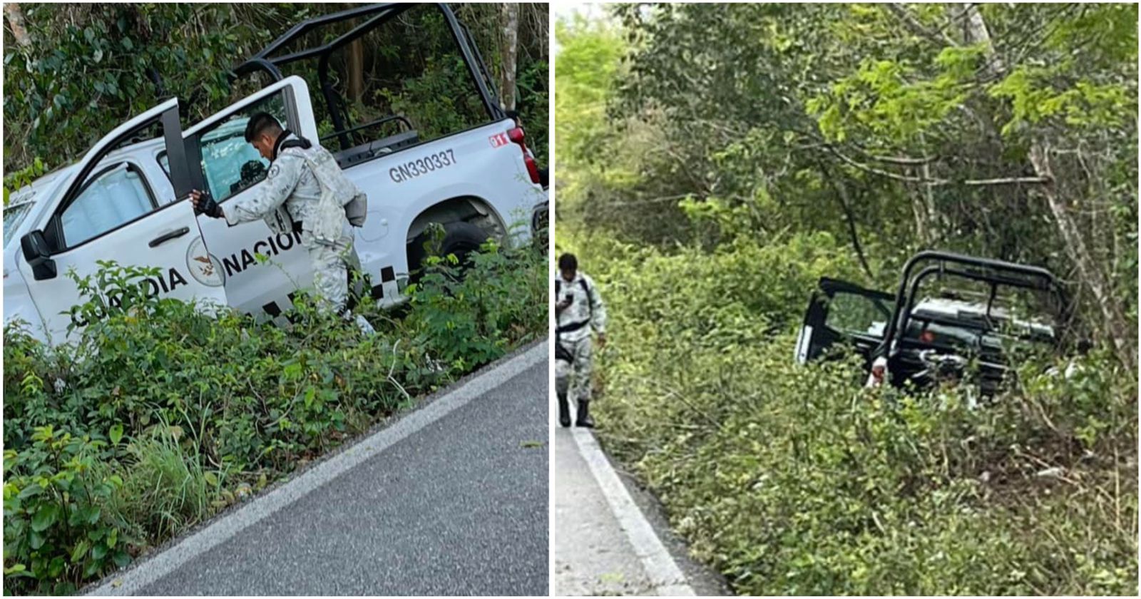 El incidente ocurrió alrededor de las 11 de la mañana de hoy, justo cuando los efectivos de la Guardia Nacional se dirigían hacia Kantunilkín para participar en el inicio del operativo Semana Santa. Sin embargo, no pudieron llegar a su destino ya que tuvieron la mala fortuna de salirse de la carretera.