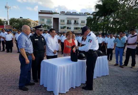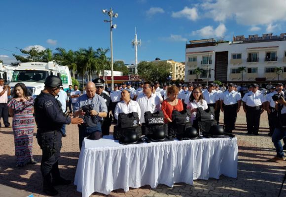 PLAYA DEL CARMEN, Quintana Roo, 1 de marzo.-En el marco de la entrega de vehículos para diversas direcciones del ayuntamiento con un monto superior a los 13 millones y 4 millones de pesos en equipamiento para la Dirección General de Seguridad Pública, Turística y Tránsito Municipal, la alcaldesa Cristina Torres Gómez exhortó a los elementos policíacos a no bajar la guardia en el combate a la delincuencia.