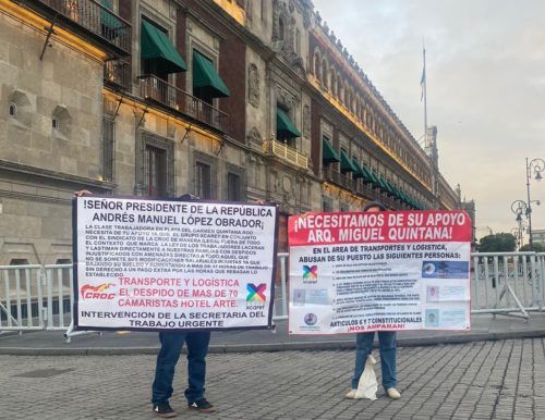 Los trabajadores, se presentaron en el Palacio Nacional para denunciar y solicitar la intervención de Andrés Manuel López Obrador ante la explotación laboral de que son víctimas por parte de Grupo Xcaret y, de paso, exhibir que su sindicato no hace nada por defenderlos, en complicidad con esta empresa.