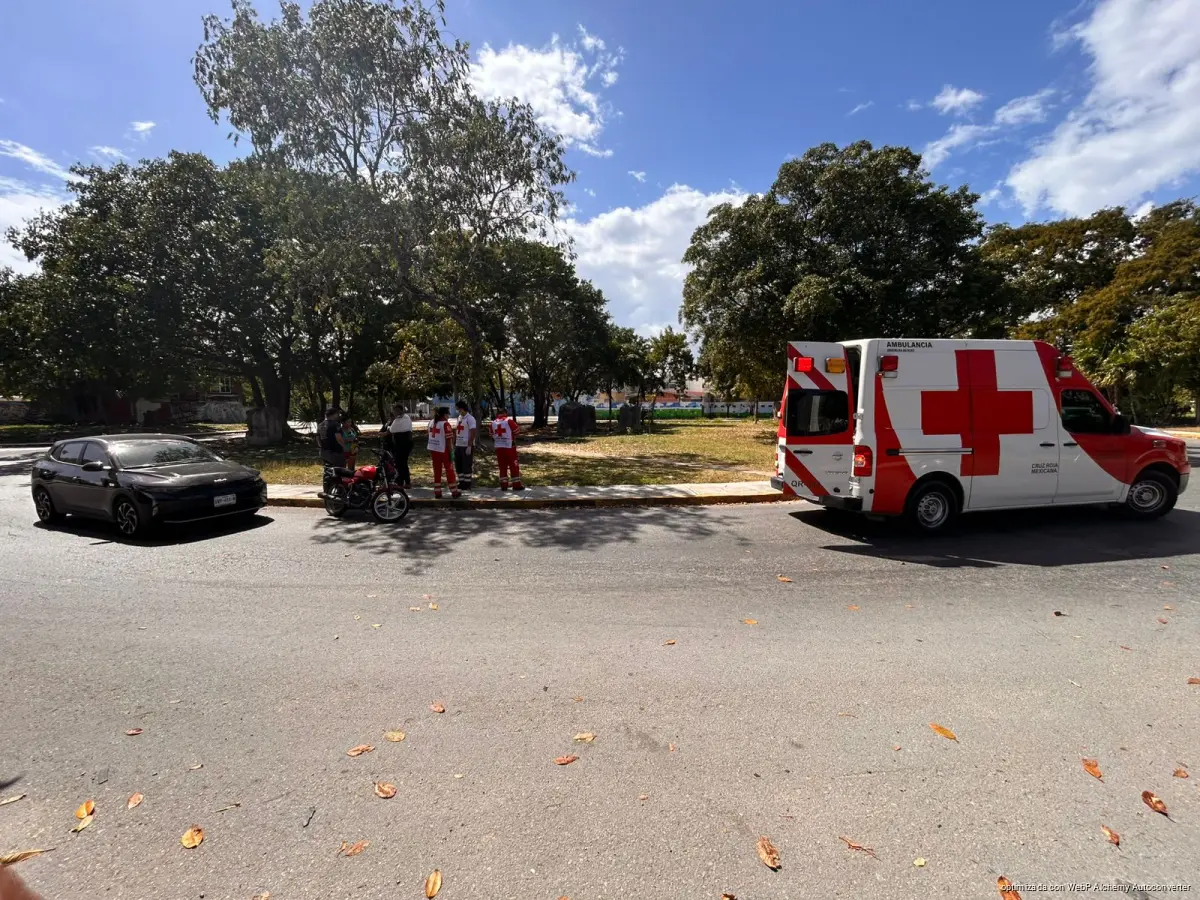 El accidente ocurrió alrededor de la 1:00 de la tarde, en la glorieta ubicada en el cruce de las avenidas Misión del Carmen y Misión del Caribe. De acuerdo con los primeros reportes, el conductor de una motocicleta Italika FT125, color rojo, tomó la curva y derrapó, cayendo al pavimento y golpeándose contra la guarnición.