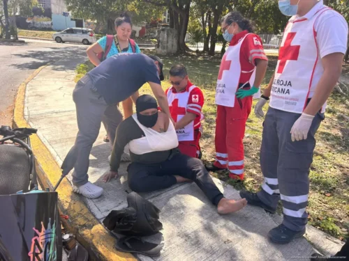 PLAYA DEL CARMEN, Quintana Roo, 25 de febrero de 2026.— Un motociclista resultó con una posible fractura en el hombro luego de perder el control de su unidad cuando circulaba en el fraccionamiento Misión del Carmen.