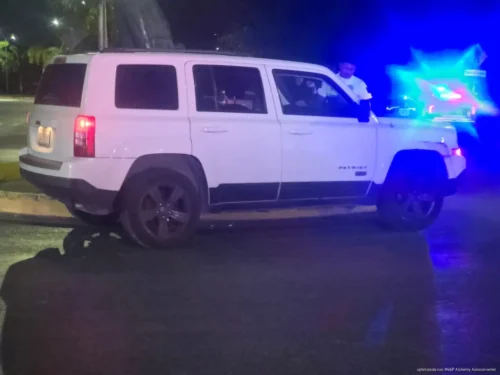 PLAYA DEL CARMEN, Quintana Roo, 24 de abril de 2026.- Una conductora perdió el control de su vehículo durante la madrugada de este jueves al intentar evitar un posible choque con un tráiler, lo que provocó que terminara fuera de la vialidad en la glorieta de la avenida 115 con Paseo Central.
