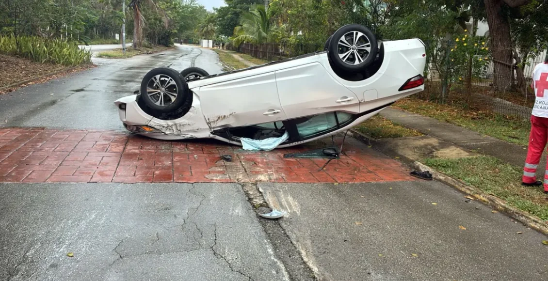 PLAYA DEL CARMEN, Quintana Roo, 17 de marzo de 2026.— Una mujer terminó volcada con su vehículo la mañana de este lunes en las inmediaciones del fraccionamiento Villa Maya, luego de perder el control por el pavimento mojado. El accidente ocurrió alrededor de las 9:00 de la mañana sobre la prolongación de la avenida Universidades, … Sigue leyendo Pierde control por pavimento mojado y vuelca su auto en Villa Maya