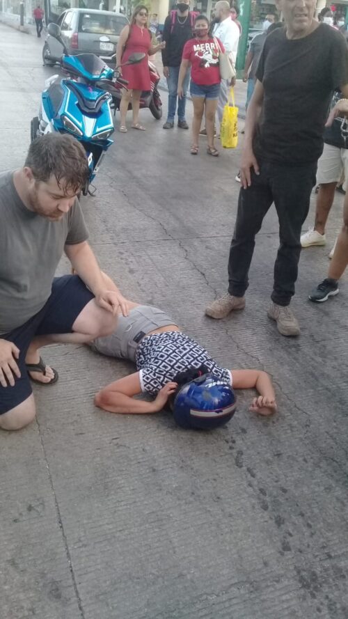 PLAYA DEL CARMEN, Quintana Roo, 03 de junio. – El accidente ocurrió sobre la avenida 30 entre 38 y 34 frente al súper AKI de la colonia centro, durante la tarde de este miércoles.