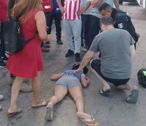 La joven motociclista perdió el control de su motocicleta antes de llegar al paso peatonal, por lo que derrapó y debido al golpe perdió el conocimiento sobre el pavimento.