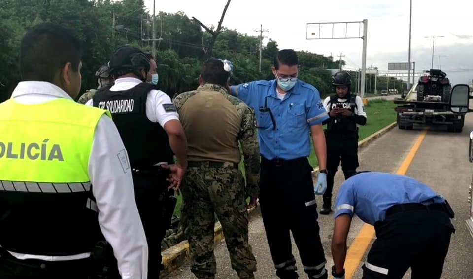 Esta unidad circulaba por el bulevar Playa del Carmen a la altura del motel Intimissimo, con un agente de la Policía Turística conduciendo a un marino, que iba de acompañante.