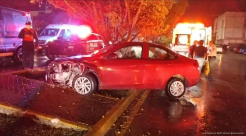 El hecho ocurrió alrededor de las 23:00 horas sobre la avenida Constituyentes, en su cruce con la avenida 85, donde el chofer de un Chevrolet Aveo, color rojo, circulaba en dirección poniente cuando, al frenar, perdió el control del volante.