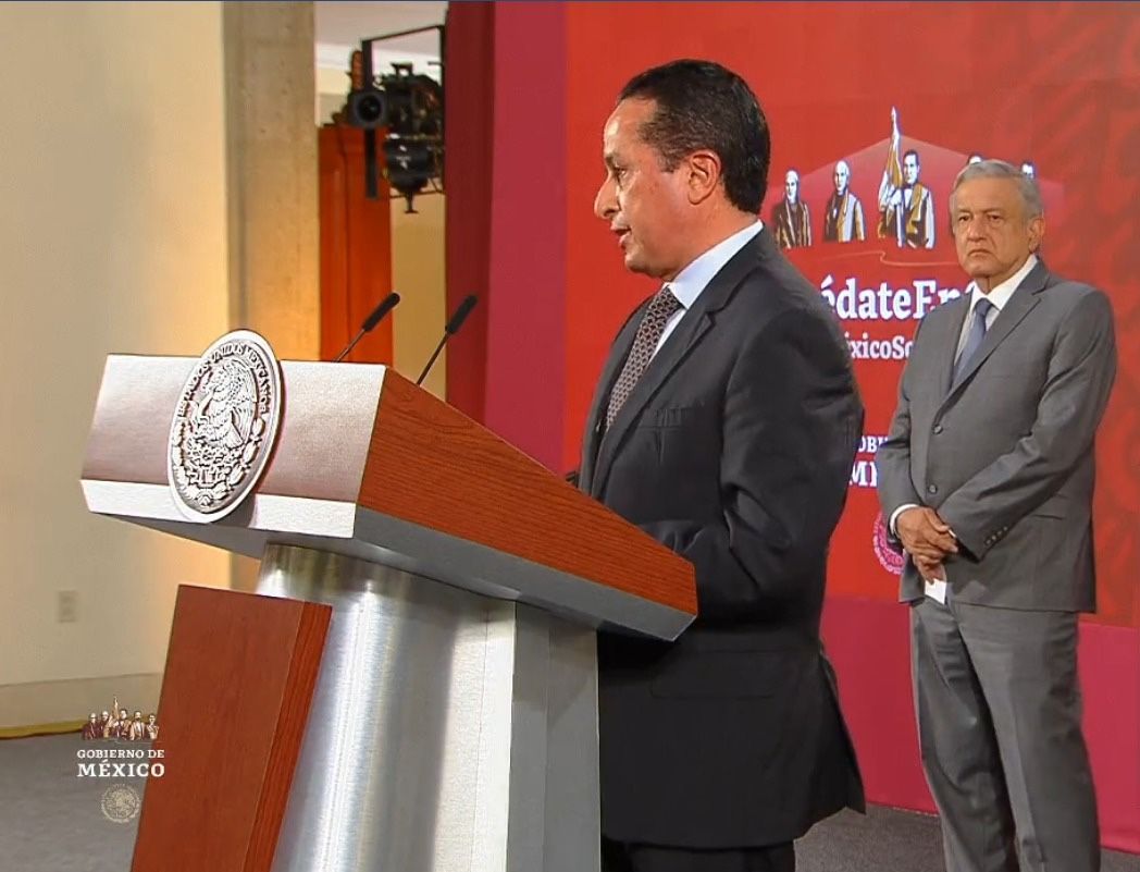 El gobernador Carlos Joaquín estuvo esta mañana en la conferencia de prensa que ofrece todos los días el presidente Andrés Manuel López Obrador en el Palacio Nacional de la ciudad de México y a la que asistieron otros mandatarios estatales, entre ellos, la jefa de gobierno de la ciudad de México, Claudia Sheinbaum Pardo, y los gobernadores de Oaxaca, Alejandro Murat Zaragoza, del estado de México, Alfredo del Mazo Maza y mandos militares.