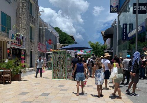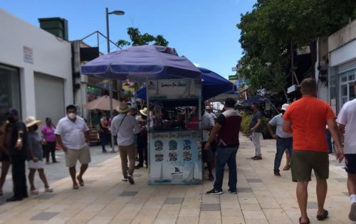 PLAYA DEL CARMEN, Quintana Roo, 14 de agosto. – Decenas de puestos ambulantes se colocaron justo en medio de la Quinta Avenida. Con esta acción se pierde la sana distancia entre las personas que caminan en la principal arteria turística de Playa del Carmen.
