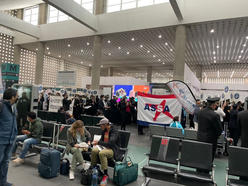La protesta fue acompañada por la Asociación Sindical de Sobrecargos de Aviación de México (ASSA).