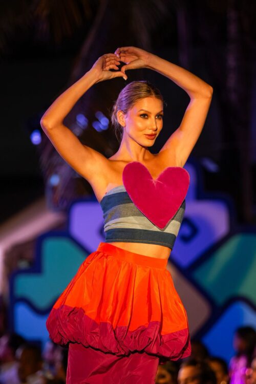 Uno de los momentos más emblemáticos del festival fue el desfile de modas, que no solo exhibió el talento de diseñadores emergentes y consolidados, sino que impregnó la marca Playa del Carmen con una visión auténtica y vibrante de su identidad cultural. Cada prenda, cada diseño, llevó consigo los colores, texturas y expresiones que reflejan el espíritu de una ciudad abierta al mundo pero profundamente arraigada en su patrimonio.