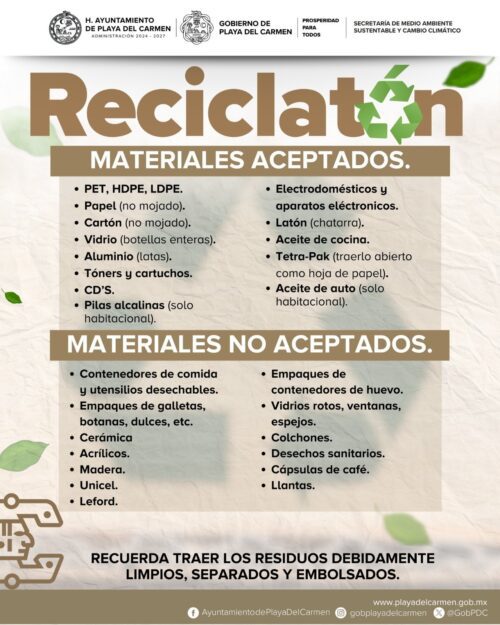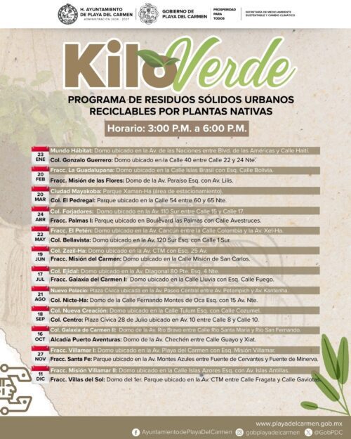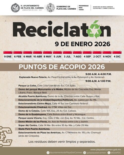 “Estos programas, que se realizan de manera mensual en distintos puntos del municipio, facilitan la correcta recolección de residuos, reducen la presión sobre los rellenos sanitarios y contribuyen a disminuir la contaminación ambiental, promoviendo la economía circular y el aprovechamiento responsable de los recursos en Playa del Carmen”, subrayó.