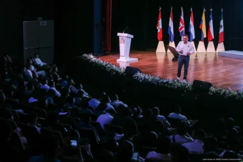 El Teatro de la Ciudad “Xaman Ha” alberga a 1,400 asistentes de manera presencial, mientras que, más de 200 participantes adicionales se suman de manera remota desde distintos estados y países, a través de la transmisión en tiempo real del evento.