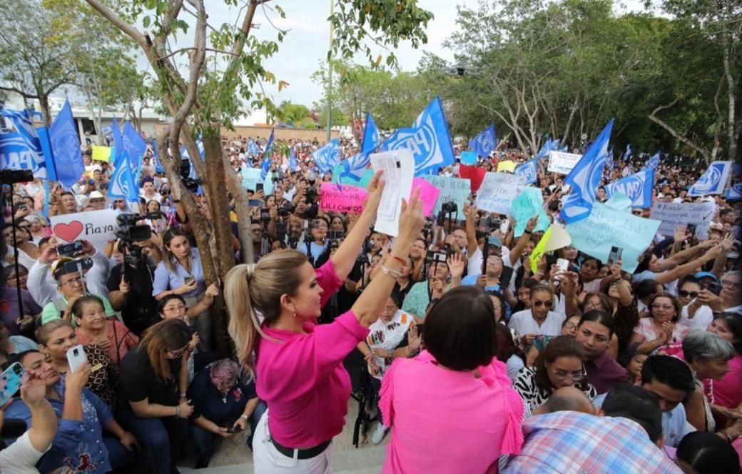 PLAYA DEL CARMEN, Quintana Roo, 07 de marzo.-  Ante una gran concentración de solidarenses, simpatizantes y militantes del Partido Acción Nacional (PAN) y del Partido Revolucionario Institucional (PRI), Lili Campos se inscribió ante el IEQROO (Instituto Electoral de Quintana Roo) en busca de la reelección como candidata a la presidencia municipal de Solidaridad.