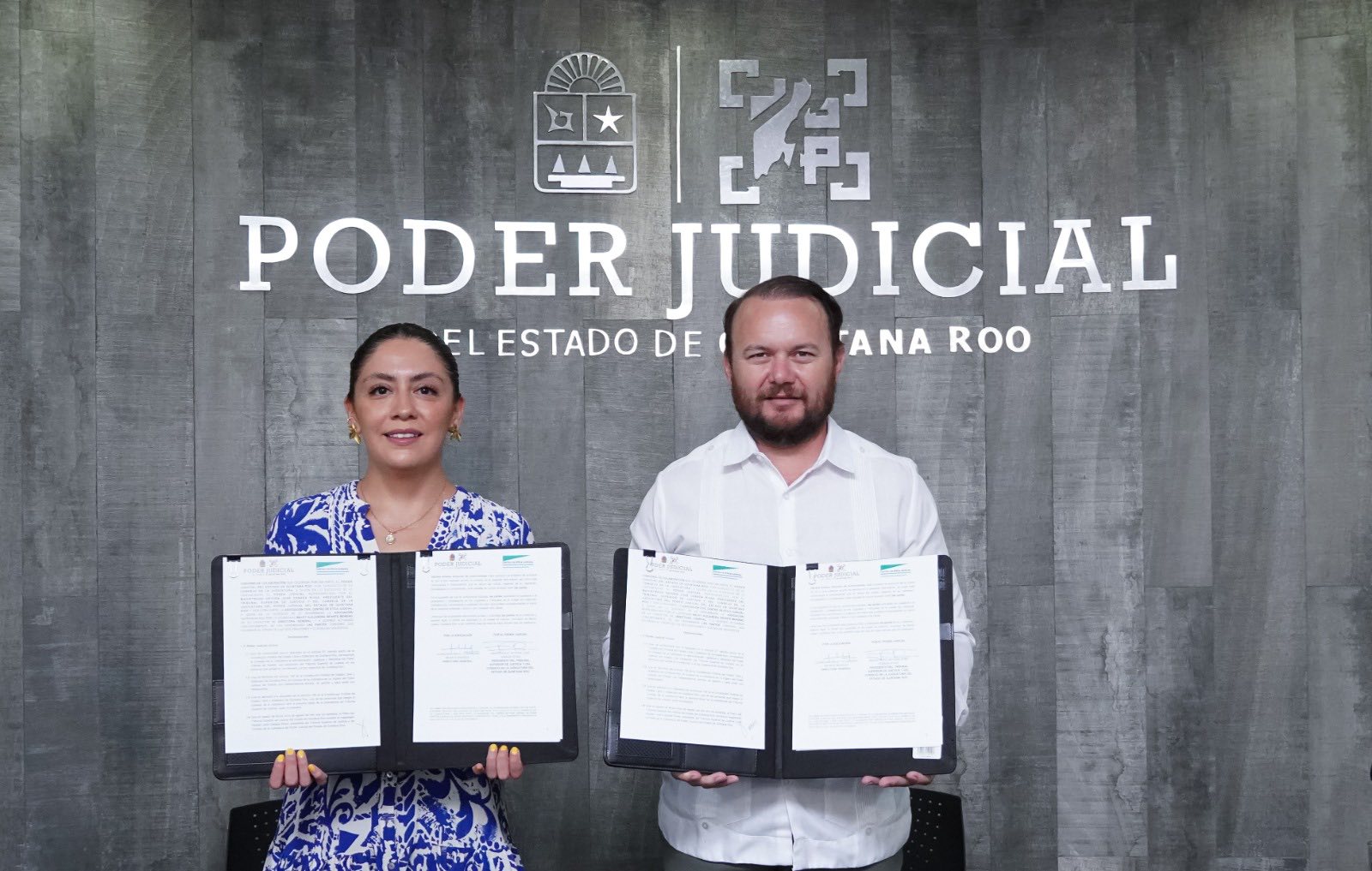 CANCÚN, Quintana Roo, 24 de mayo. — El Poder Judicial de Quintana Roo y el Centro de Ética Judicial A.C. renovaron su convenio de colaboración por tres años más, con el objetivo de seguir promoviendo la capacitación ética del personal jurisdiccional. La firma del acuerdo estuvo encabezada por el Magistrado Presidente, Heyden Cebada Rivas, y la Directora General del Centro de Ética Judicial, Maley Alejandra Infante Moreno.