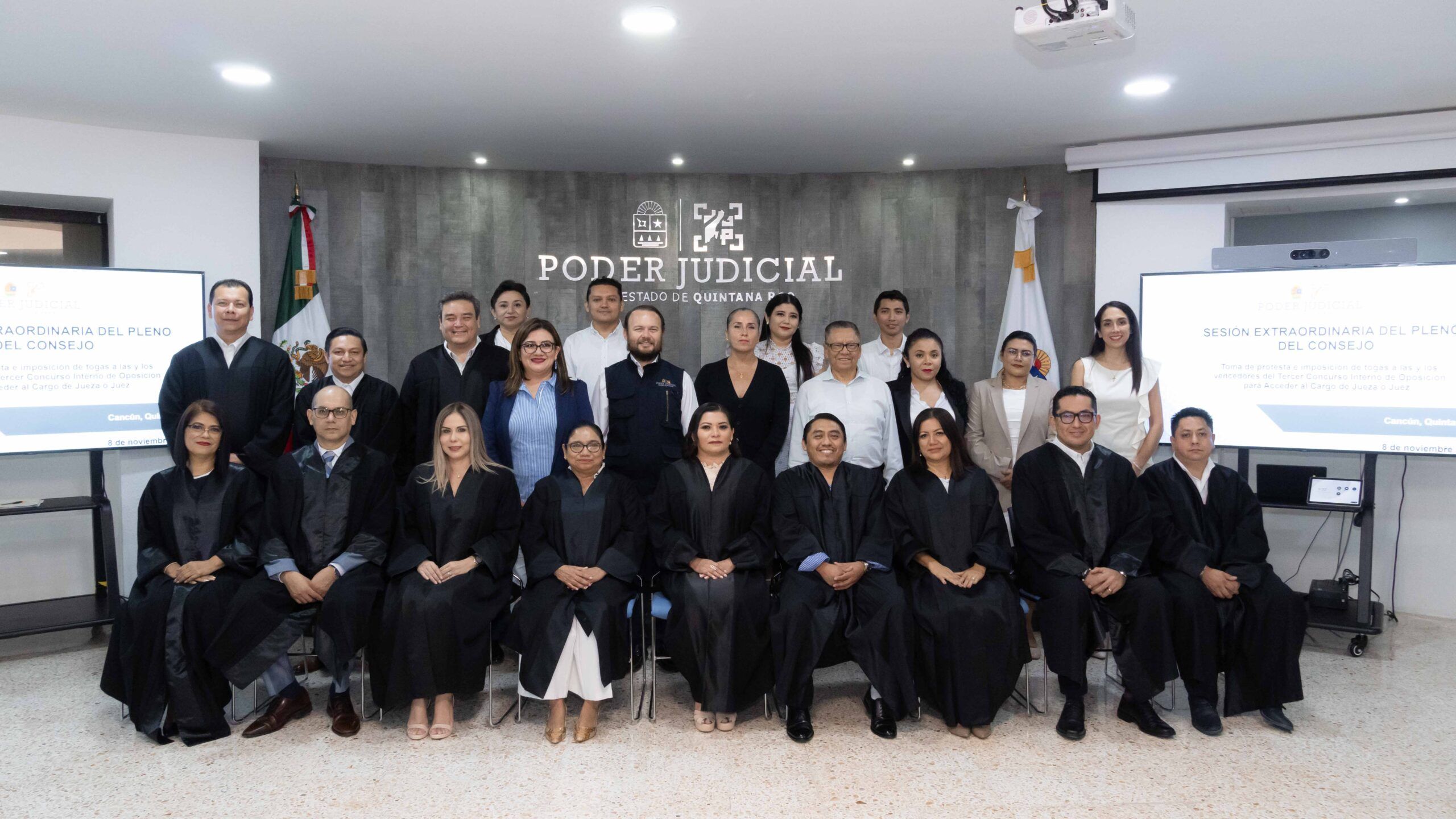 CANCÚN, Quintana Roo, 09 noviembre. – En sesión Extraordinaria del Pleno del Consejo de la Judicatura, el Magistrado Presidente Heyden José Cebada Rivas, llevó a cabo la Toma de Protesta e Imposición de Togas a las y los vencedores del Tercer Concurso Interno de Oposición para acceder al cargo de Jueza y Juez.