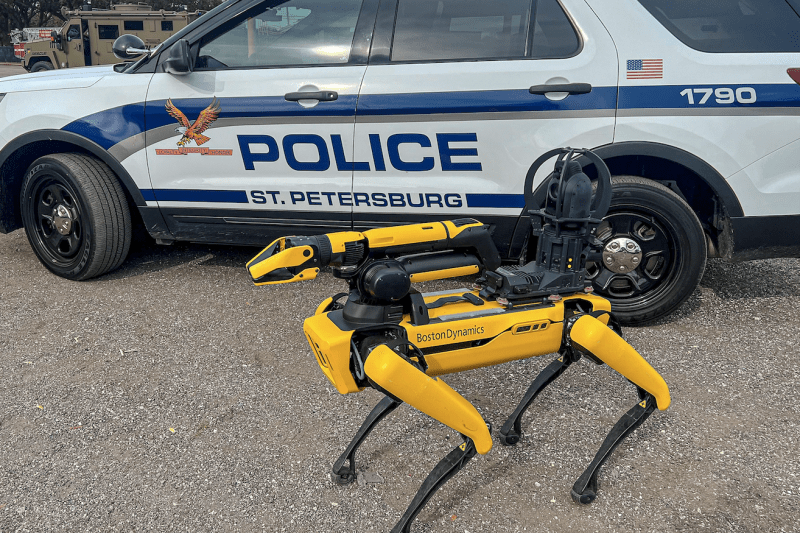 La Policía de St. Petersburg, en la costa oeste de Florida, presentó a su nuevo refuerzo, Spot, un perro robótico a control remoto que se utilizará en casos en los que sea necesario enviar a los agentes locales de las fuerzas especiales (SWAT).