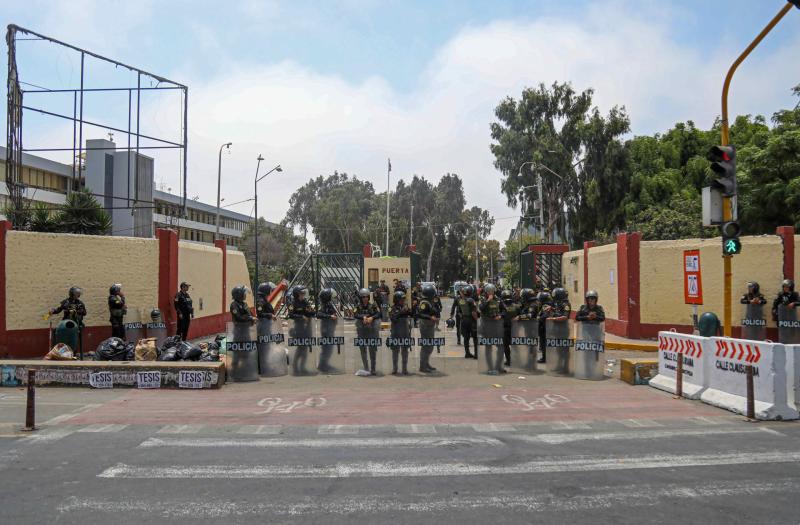 Esta mañana, la Policía Nacional de Perú (PNP) echó abajo con una tanqueta la entrada al campus universitario limeño e ingreso a las instalaciones.