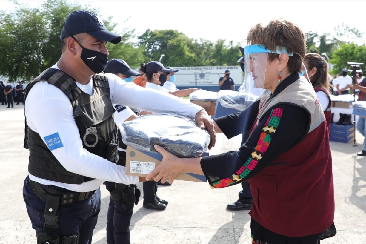 PLAYA DEL CARMEN, Quintana Roo, a 07 de julio.- Con la entrega de 800 nuevos uniformes, el Gobierno de Solidaridad refrenda su compromiso de trabajar en unidad con los gobiernos estatal y federal fortaleciendo la Secretaría de Seguridad Pública y Tránsito, para así servir y proteger a los solidarenses.