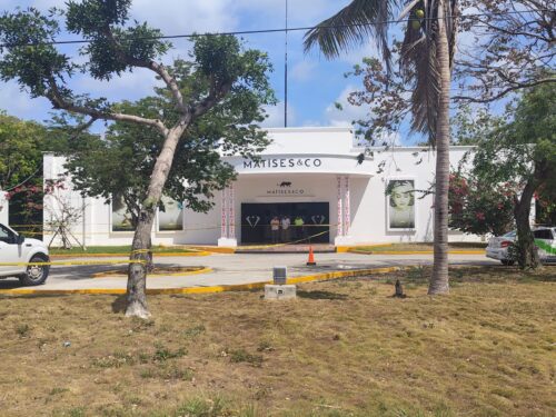 Puerto Morelos, Q. Roo, 26 de junio de 2025.— Un intento de asalto a la joyería Matisses & Co., ubicada sobre la carretera federal 307 entre Playa del Carmen y Puerto Morelos, desató una intensa movilización de fuerzas de seguridad, dejando como saldo un policía lesionado, un presunto delincuente detenido y armas aseguradas, además de daños materiales y pánico entre testigos.