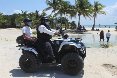 En la zona turística y de playas, aunado a la vigilancia se emiten recomendaciones a los paseantes, colaboradores de los restaurantes, comercios y centros de hospedaje, de la misma forma los oficiales brindan información en los tres módulos de atención ubicados sobre la Quinta Avenida.