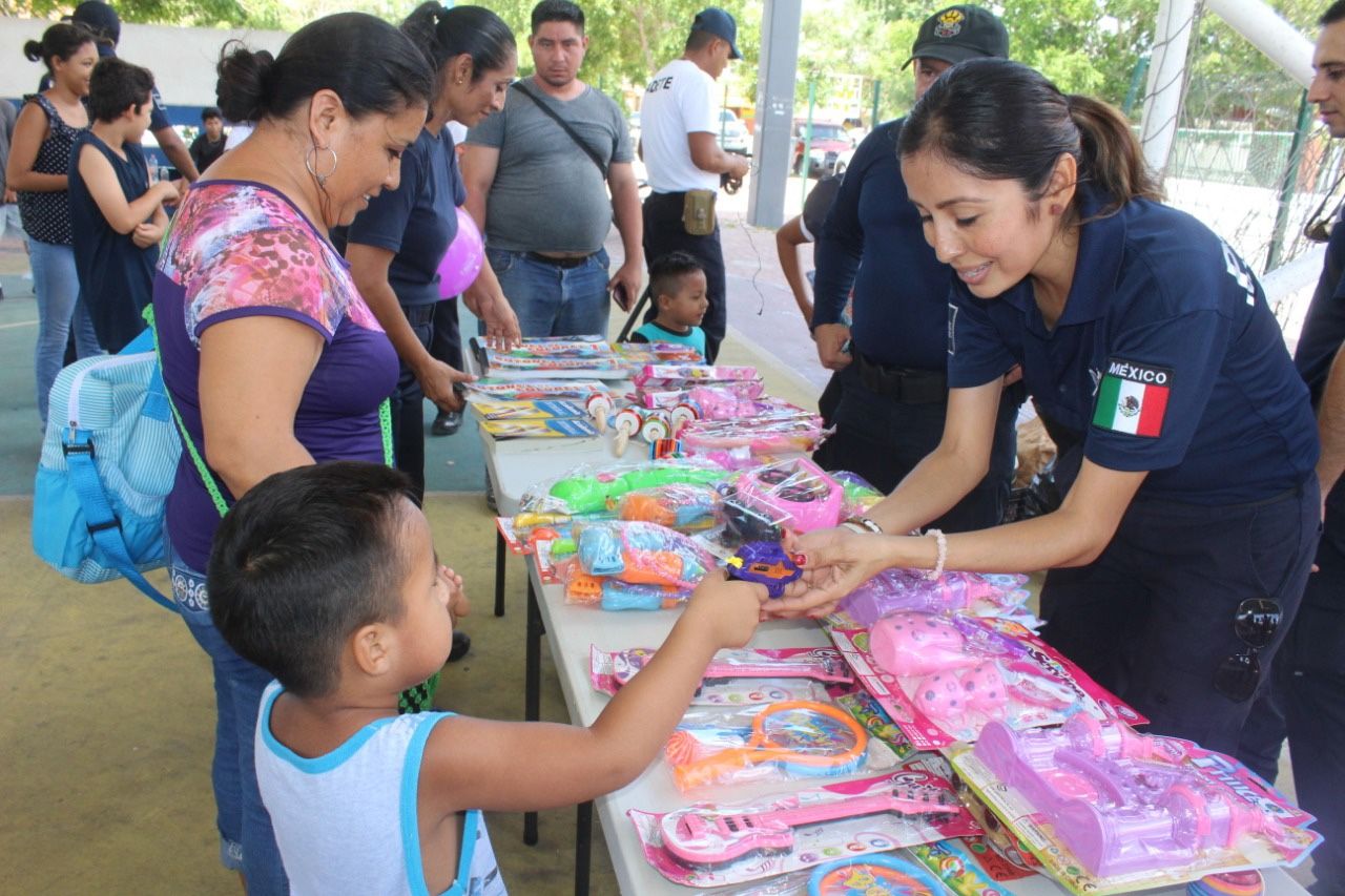 PLAYA DEL CARMEN, Quintana Roo, 09 de agosto.- En el marco de las estrategias de prevención que promueve el gobierno de la presidenta municipal, Laura Beristain Navarrete, la Dirección General de Seguridad Pública y Tránsito de Solidaridad, a cargo del comandante Jorge Robles Aguilar, ha realizado 14 jornadas del programa “Cambia tu pistola de juguete por un juguete nuevo” mediante el cual más de 390 niños han intercambiado un juguete réplica de armamento por uno tradicional, didáctico o deportivo, con el fin de evitar patrones de conducta violentos e incentivar el sano esparcimiento y la convivencia familiar por un Solidaridad más seguro para todos.