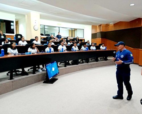 Con la participación de aplicadores de la ley de diferentes países de Latinoamérica, el comandante Renán Arjona, habló sobre la aplicación de estrategias efectivas en el municipio de Solidaridad y compartió experiencias con los estudiantes para incentivarlos a continuar sus estudios y ser personas de bien para su país.