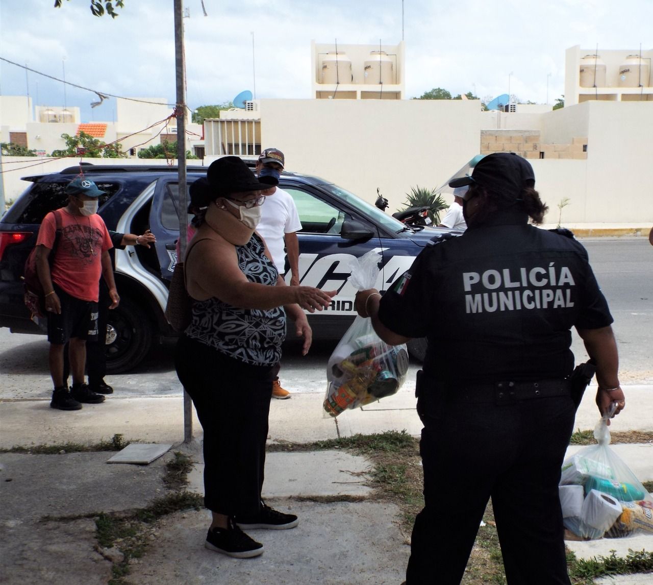 PLAYA DEL CARMEN, Quintana Roo, 25 de mayo.- A través de un trabajo coordinado, la Secretaría de Seguridad Pública y Tránsito Municipal de Solidaridad que dirige el comandante Jorge Robles Aguilar y la Asociación Civil “Intégralo by Joahan Rodríguez”, realizan la entrega de despensas a los más de 200 adultos mayores del programa Vigilantes Ciudadanos para apoyar en su economía familiar, mismos que permanecen en casa, sin acudir a laborar y con goce de sueldo como medida de prevención durante la emergencia sanitaria por COVID-19.