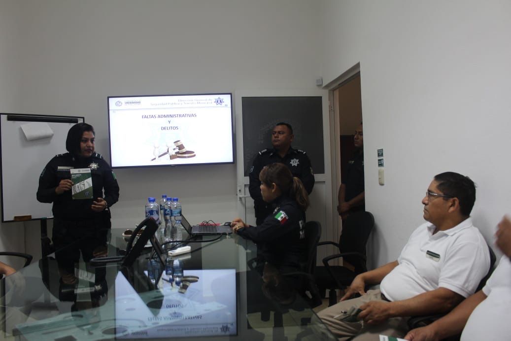 PLAYA DEL CARMEN, Quintana Roo, a 22 de enero.- La Dirección General de Seguridad Pública y Tránsito Municipal, que encabeza Martín Estrada Sánchez, imparte pláticas de prevención de delitos a más de 7 mil empleados de los parques temáticos de Xcaret y Xenses a través del programa “Juntos policía y sociedad, vencemos la inseguridad”, para que puedan prevenir y actuar ante actos delictivos en su centro laboral y en sus hogares.