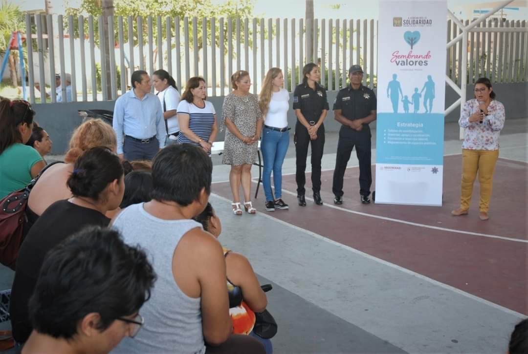 PLAYA DEL CARMEN, Quintana Roo, 9 de septiembre.- En beneficio de 80 familias y 200 jóvenes del fraccionamiento Villas del Sol y la colonia Ejidal, el gobierno de Solidaridad a través de la Secretaría de Seguridad Pública y Tránsito Municipal y el apoyo del programa Fortalecimiento para la Seguridad (FORTASEG) 2020, dará inicio al programa “Sembrando Valores” mediante el cual se llevarán a cabo talleres, conferencias y diversas actividades enfocadas a la formación laboral, disminuir factores de riesgo, prevención y atención de violencia familiar y de género.