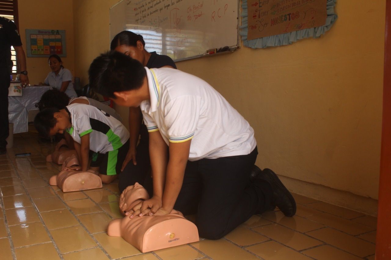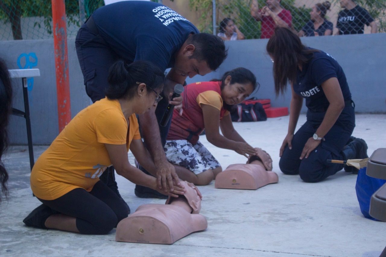 PLAYA DEL CARMEN, Quintana Roo, 6 de octubre.- La Dirección General de Seguridad Pública y Tránsito de Solidaridad que dirige el encargado del despacho, comandante Jorge Robles Aguilar, capacita de forma constate a los elementos en técnicas de Reanimación Cardio Pulmonar (RCP) y primeros auxilios para reforzar su labor como primer respondiente a situaciones de emergencias; también se replica esta capacitación a la población impartiendo 20 cursos en nueve escuelas, una fundación y en nueve eventos, a través de las jornadas “Juntos Policía y Sociedad Vencemos la Inseguridad”.